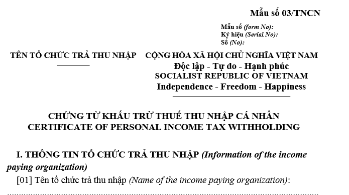 Tải Mẫu Chứng từ khấu trừ thuế thu nhập cá nhân mới nhất TẠI ĐÂY