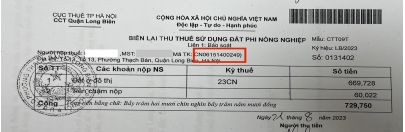 Mã Phi nông nghiệp được in trên thông báo hoăc biên lai đã nộp các năm trước